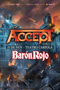 ¡Confirmado! Una dupla de temer ha confirmado una fecha histórica en nuestro país, así es, los alemanes de ACCEPT y los españoles de BARON ROJO se presentarán en conjunto el próximo 21 de noviembre en el Teatro Cariola de Santiago.
