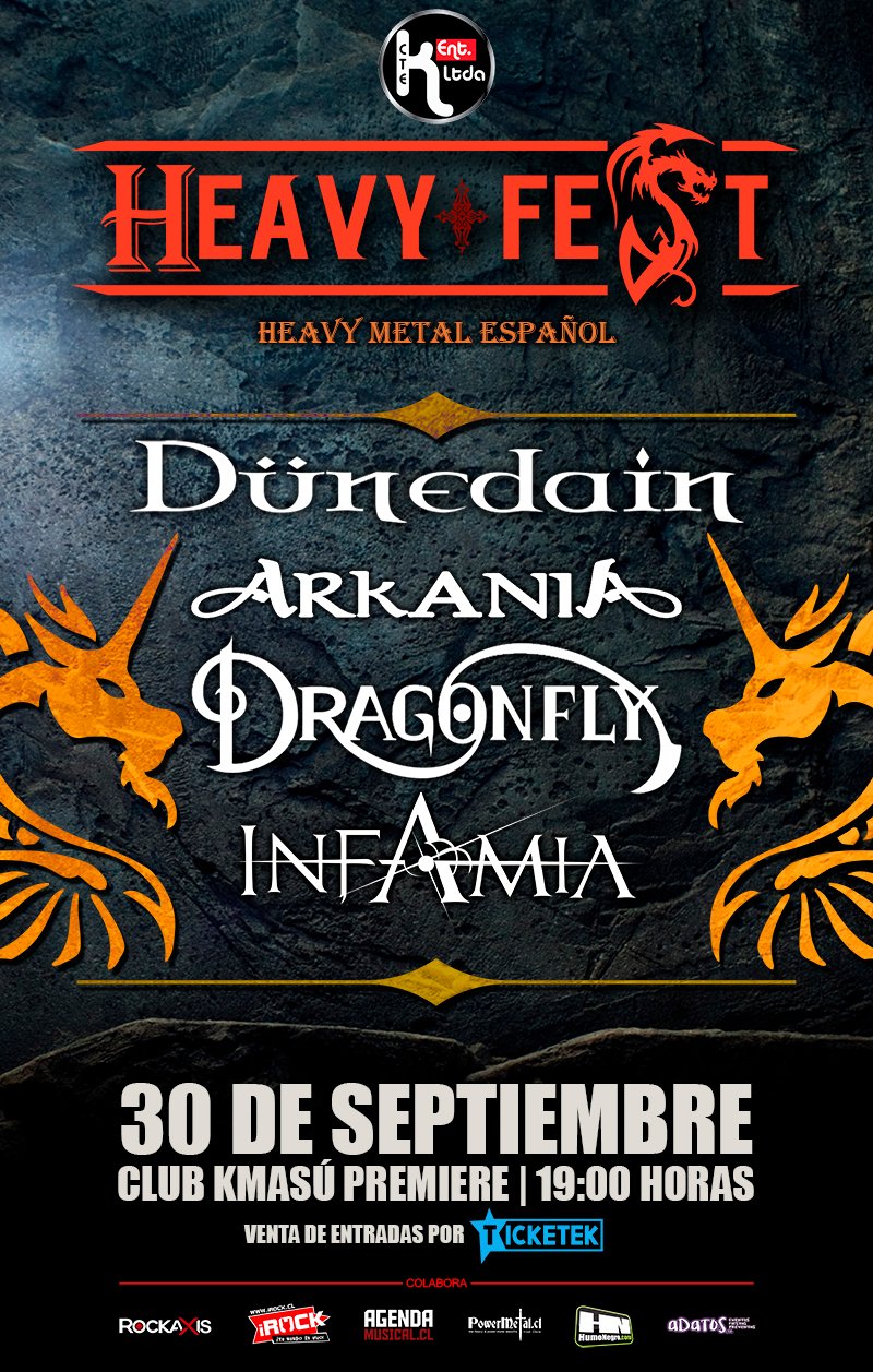 CTEK Entertainment Limitada trae a Chile un batallón del Heavy Metal Español, para dar vida al Heavy Fest, festival que tendrá en el line up a cuatro excelentes exponentes de España. La cita será el 30 de septiembre en el Club Kmasú Premiere de Santiago, y promete ser una excelente propuesta musical para los amantes del metal español.