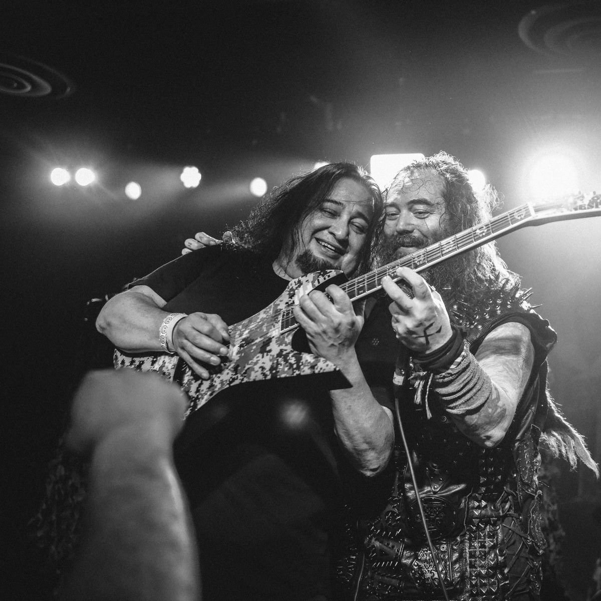INDIO, CA – APRIL 17: Brian Johnson (L) and Angus Young of AC/DC perform during the 2015 Coachella Valley Music And Arts Festival at The Empire Polo Club on April 17, 2015 in Indio, California. (Photo by Tim Mosenfelder/WireImage)