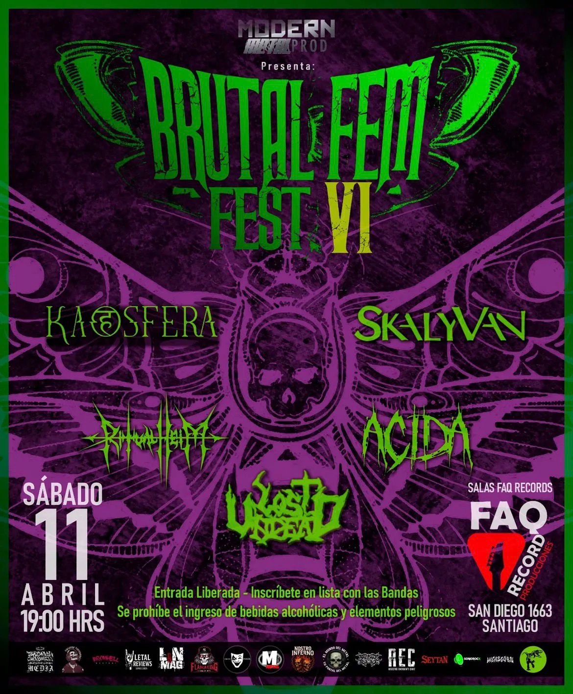 Santiago se prepara para una noche de furia y potencia femenina con la sexta edición del Brutal Fem Fest, que se realizará el próximo sábado 11 de abril de 2026 a las 19:00 hrs en Sala FaqRecord (San Diego 1663). Con entrada liberada, este festival se ha consolidado como un espacio fundamental para visibilizar a las mujeres en la escena del metal extremo chileno.