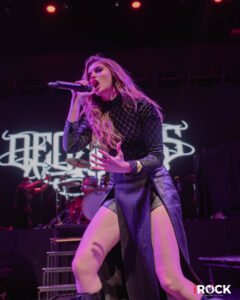 El respiro llegó con “Epilogue”, donde Veronica se alzó en su registro más lírico, acompañada de un recinto iluminado con celulares encendidos que simulaban velas en un rito fúnebre y sublime. Fue uno de los momentos más conmovedores de la noche, un contraste que acentuó la profundidad conceptual de la banda.