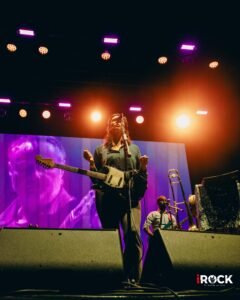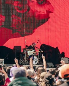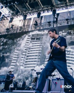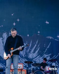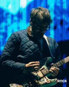 La tarde se transformó poco a poco en un paisaje de reencuentros, risas y resignación ante las largas filas para comprar comida o bebida, que se sumaron al cansancio acumulado por las demoras iniciales. Sin embargo, el ánimo se sostuvo gracias a lo que realmente importa, la música. Mogwai ofreció uno de los momentos más intensos y memorables del día, desplegando un set que transitó con maestría entre la calma contemplativa y el cataclismo sonoro. La banda escocesa construyó, a través de capas de guitarras y atmósferas casi cinematográficas, un paisaje sonoro que envolvió al público por completo, generando una sensación de inmersión difícil de describir. Una magnifica experiencia sensorial y espiritual, en la que cada crescendo parecía expandir los límites del silencio. Sobre el escenario, una bandera palestina acompañó su presentación, sumando una dimensión política y humana a ese universo de sonidos. En tiempos donde el arte se levanta también como forma de resistencia, aquella imagen, el ruido, la luz y la bandera ondeando, se volvió un símbolo poderoso y con la música no solo como refugio, sino como un lenguaje de empatía, conciencia y una forma solemne de protestar que trasciende fronteras.