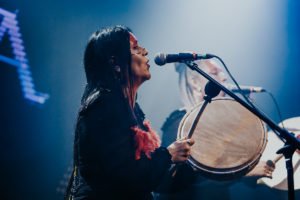 La noche comenzó con la apertura a cargo de las nacionales de Kiepja, quienes ofrecieron un show cargado de kultrunes y voces, creando un ritual musical colmado de magia. Kiepja, una agrupación de mujeres músicas, cautivó al público con su estilo único de rock metal mantra, fusionando sonidos ancestrales, ritualidad y cantos de poder. La presentación finalizó con una gran aclamación que conectó a los presentes con nuestras raíces.