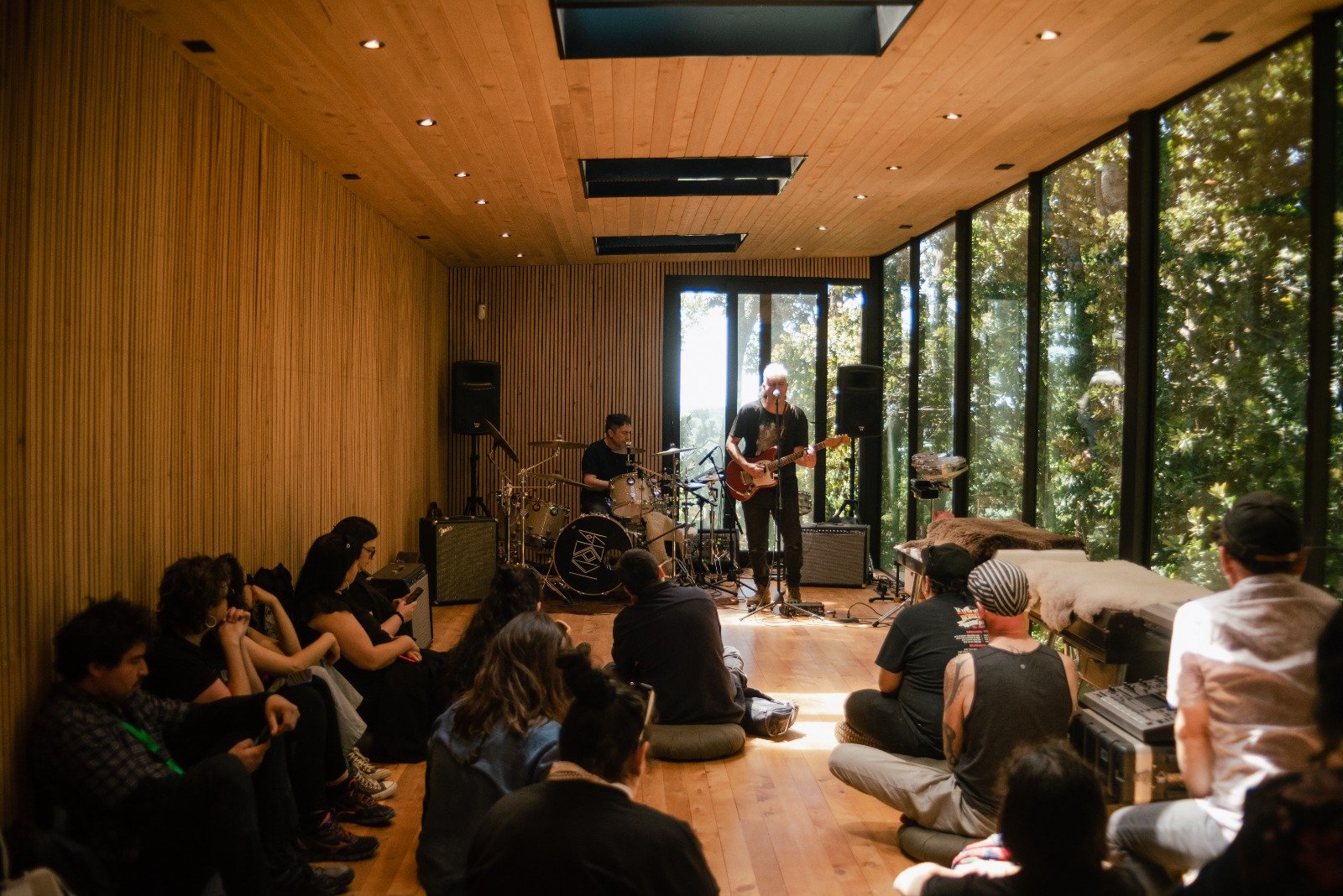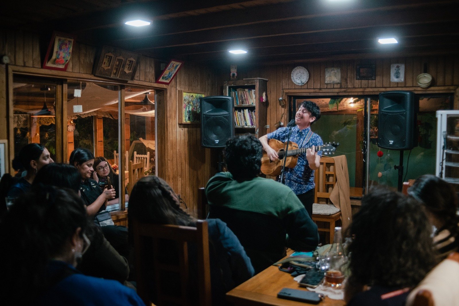 Desde las bandas, el sentimiento fue similar: agradecieron la oportunidad de encontrarse con programadores de distintos territorios, abriendo caminos para nuevas circulaciones y futuras colaboraciones. Fueron tres días de sol, calor y comunidad. El primer día —desarrollado en el Teatro del Centro Cultural de Castro— destacó por la participación de colegios que repletaron la sala para disfrutar de Abuela Pirata. Ese mismo día se realizó la rueda de negocios, además del conversatorio “Articulando ecosistemas creativos en la zona sur de Chile”, y los showcases en el Hotel y Terraza Arrebol, que también hospedó a programadores y artistas junto a Palafito Azul y Residencial Ballena Azul.