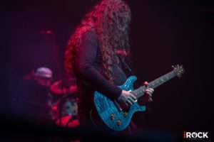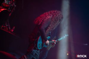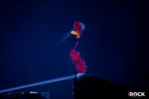 La rítmica punzante de #Addicted, con el bajo protagonista de Mariusz, es seguida con energía entusiasta del público, bajo destellantes colores provenientes de una iluminación muy bien diseñada, para crear el ambiente propicio que genere distintos estados emocionales, los que fueron avanzando desde la rockera “Rainbow Box”, cuyo pulso invita a mover las cabezas, como para un emotivo homenaje a Grudznski, con la belleza de “Towards the Blue Horizon”, canción compuesta por el cantante, en su momento, inspirado en la pérdida de un antiguo amigo, y que por las cosas de la vida, derivó su enfoque hacia la partida de su talentoso compañero de banda. Una inyección de sensibilidad que el conjunto maneja de forma magistral, y que envuelve su espectáculo en su totalidad.