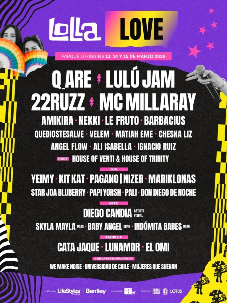 Lolla Love 2026 anuncia su cartel: Q_ARE, Lulú Jam, 22Ruzz y MC Millaray encabezan el espacio de diversidad cultural