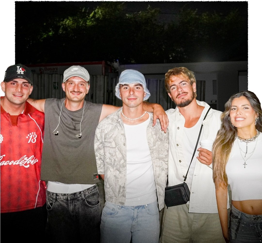 Formado por amigos de infancia, la dupla local se ha consolidado como la nueva cara de la cumbia del Cono Sur, renovando el género con una propuesta fresca, romántica y llena de energía. Con su hit “Boomerang”, alcanzaron el #1 del chart viral de Spotify en Chile y se posicionaron en el top 5 en Uruguay, Bolivia, Argentina y Paraguay. Más recientemente, “Puñaladas” ingresó a playlists virales en España, Argentina, Chile y Uruguay, además de ubicarse en el top 10 del Hot 100 de Billboard Argentina.