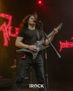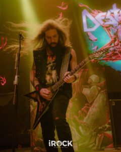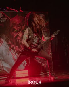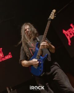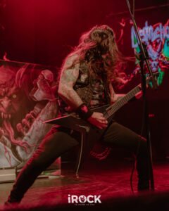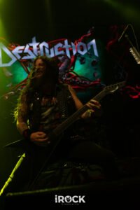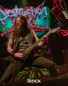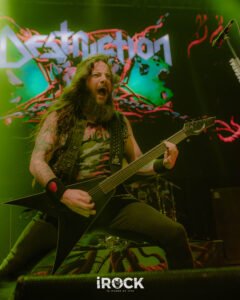 La noche avanzó con Destruction dejando en claro que su relación con el escenario no pasa por la nostalgia sino por la confrontación directa, como si cada presentación fuera una reafirmación de principios. Curse the Gods abrió el ritual con un aire primitivo que conectó de inmediato con la raíz más pagana del thrash europeo, preparando el terreno para Invincible Force, que llegó como un golpe frontal, compacto y sin respiros, reforzado luego por Nailed to the Cross, donde el pulso marcial y los riffs afilados establecieron una dinámica de tensión constante. Scumbag Human Race introdujo un matiz más corrosivo, casi cínico, empujando al público a una respuesta física más intensa, antes de que Mad Butcher emergiera como ese himno indestructible que no necesita presentación y que fue coreado con una mezcla de euforia y respeto. El set continuó con Life Without Sense, que funcionó como un catalizador definitivo para el caos, seguido por Diabolical, donde la banda profundizó en una oscuridad más espesa sin perder velocidad ni precisión. Total Desaster mantuvo la combustión a niveles insostenibles y enlazó de forma natural con No Kings No Masters, una declaración ideológica que encontró eco inmediato en el público, mientras A.N.G.S.T. añadió un tono más sombrío y reflexivo sin romper la agresividad general. The Butcher Strikes Back retomó el filo clásico con una ejecución demoledora que volvió a tensar el ambiente, preparando el terreno para Antichrist, uno de los momentos más intensos de la noche. Eternal Ban y Destruction reafirmaron el dominio absoluto de la banda sobre el escenario, con un público completamente entregado, y cuando llegaron Bestial Invasion y al cierre con Thrash ’Til Death ya no hubo sensación de término, sino de continuidad acentuado por una bengala encendida que no celebró nada, sino que advirtió, como si la banda dejara claro que esta música no se agota en una noche ni en un setlist, sino que se proyecta hacia adelante con la misma ferocidad con la que nació.