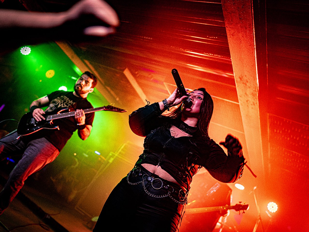 La segunda descarga de la noche vino de la mano de Eternal Thirst, una banda que ha sabido mantenerse firme en su identidad, pero que esta vez sorprendió con una nueva etapa marcada por la poderosa entrada de Eva Murgas en la voz. Su irrupción le dio un aire fresco y contundente al conjunto, con un registro agudo y desgarrador que evocaba de inmediato a Doro Pesch y a las glorias de Warlock.