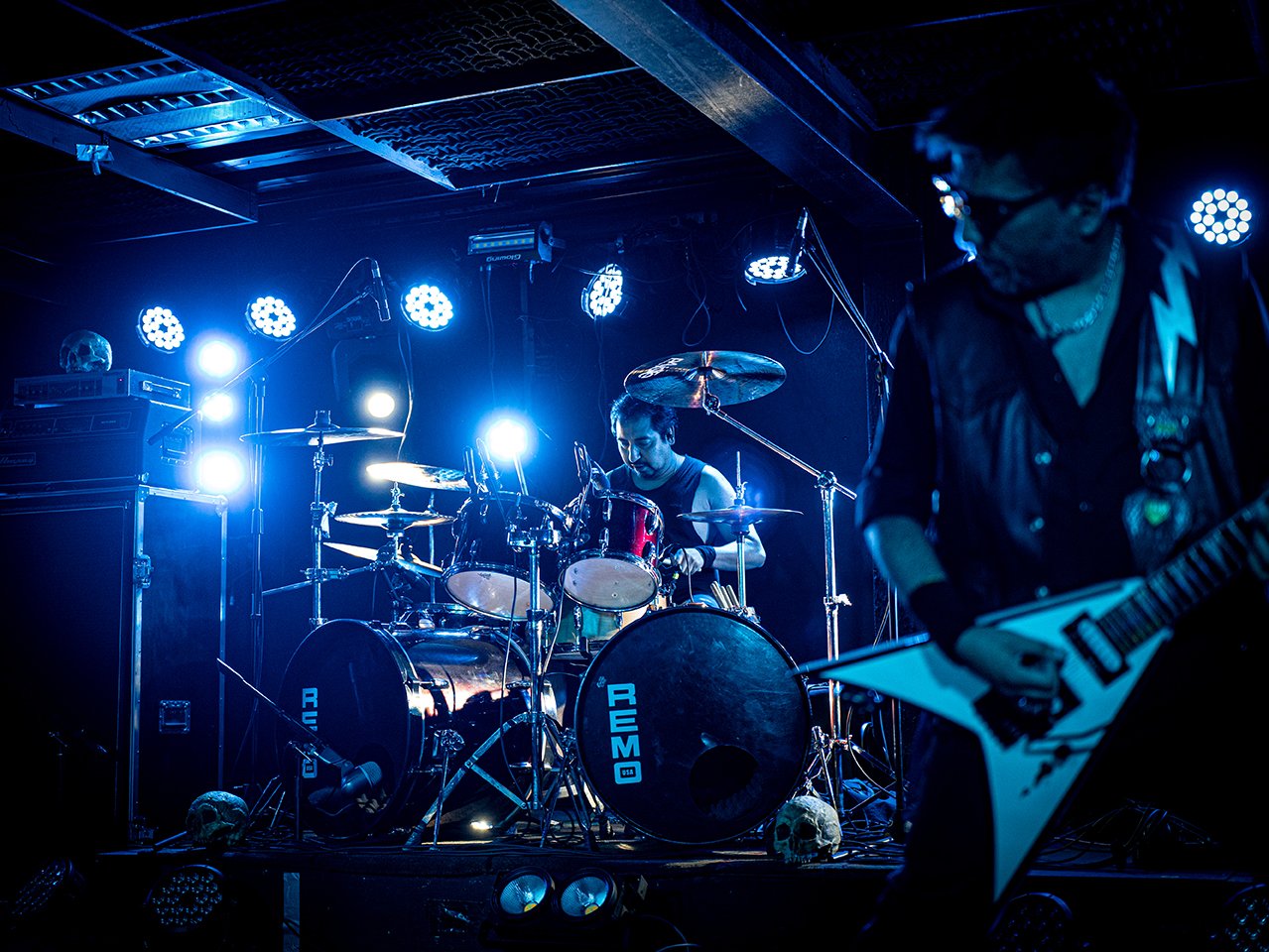 Para entender a Metalucifer, es necesario comprender la pasión y la euforia que nacen del sonido primigenio del metal, crudo, duro y tradicional. Sin pomposidad, sin maquillaje sonoro, sin artificios digitales. La suya es música hecha desde las vísceras, forjada en la devoción absoluta por el acero. Nacidos como una respuesta al fanatismo por el Heavy Metal, Gezol y compañía convirtieron a Metalucifer en una declaración de principios,rendir el más puro homenaje a las raíces del género. Esa misma energía se respiraba en la Sala RBX, repleta hasta el límite y con un público tan diverso como entregado: blackers, thrasheros, deathmetaleros, powermetaleros, doomers… todos unidos bajo la bandera del sonido más pútrido y noble del Heavy Metal.
