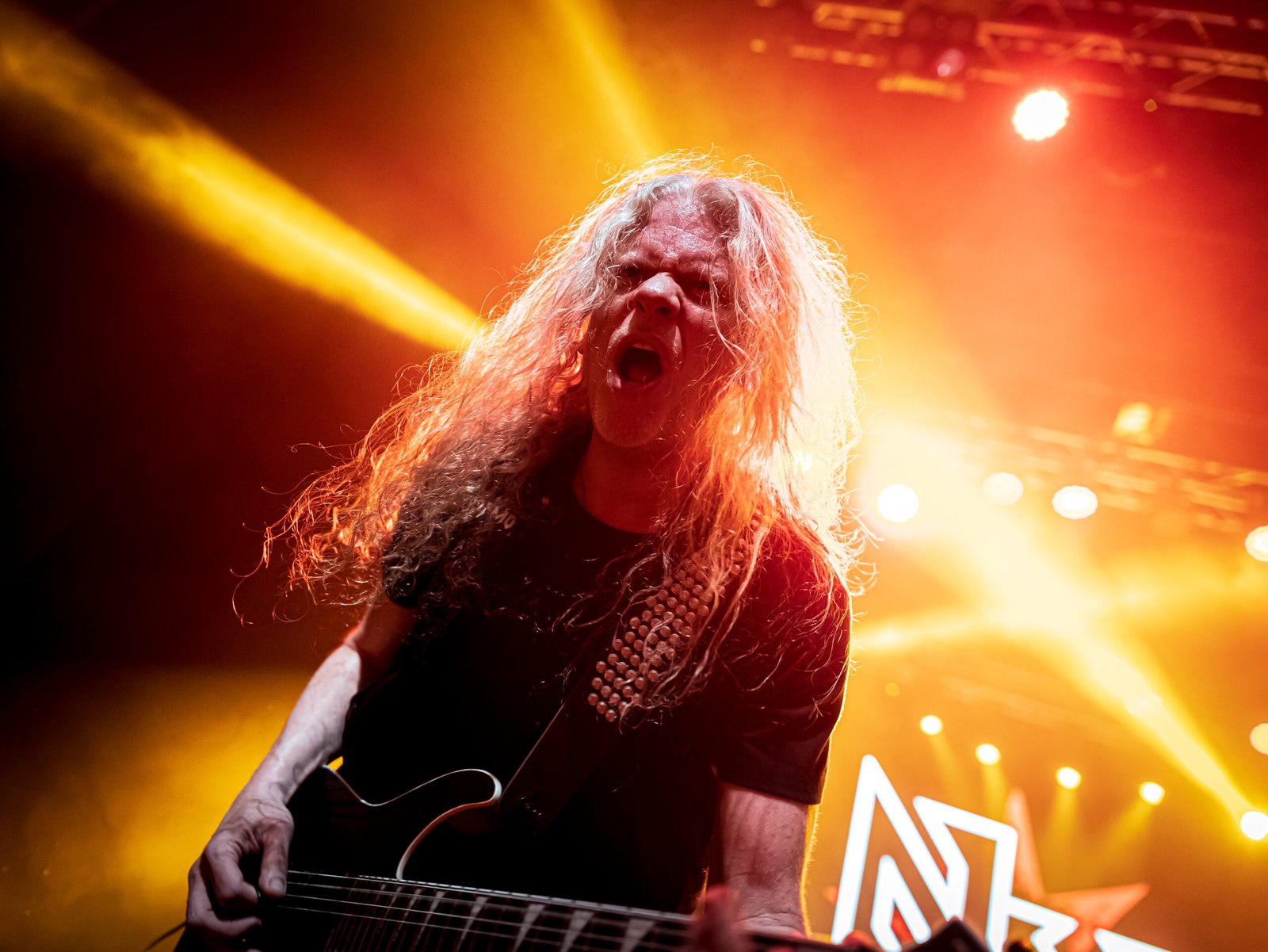 “Beyond Within” y “My Acid Words” suenan brutales, y llega al escenario la clásica bandera chilena con el logo de la banda, que el cantante muestra con orgullo. La energía no decae nunca y el maestro Jeff Loomis se entrega por completo, dejando riffs inmortales y solos mágicos por doquier. Lo disfruta y se nota. El jóven Jack Cattoi se luce acompañando con su guitarra, derrochando calidad, mientras Semir Özerkan brilla con su manera de tocar el bajo, llena de recursos. Van Williams es una bestia y sus originales arreglos son marca registrada de Nevermore, mientras Berzan simplemente brilla con una espectacular performance, llegando a todo tipo de notas y cambiando la entonación como si fuera algo muy sencillo. Pasan “Engines of Hate”, “This Sacrament”, “The Seven Tongues” y la muy oreja “The Final Product”, todas recibidas con emoción por un público que esperó demasiado por este momento. “Narcosynthesis” fue un clímax notorio, donde todos saltaron y corearon ante la dicha y gran actuación de la banda.