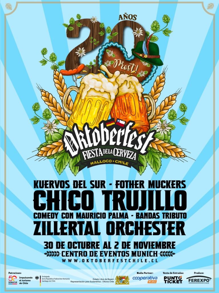 Para conmemorar estas dos décadas, Oktoberfest Chile presenta una edición recargada de música, experiencias y tradición, con más de 40 cervecerías nacionales e internacionales, gastronomía típica, catas guiadas por expertos, un potente line up musical encabezado por Chico Trujillo y la presentación estelar de la querida Zillertal Orchester, banda bávaro-argentina que ha acompañado esta fiesta desde sus inicios.