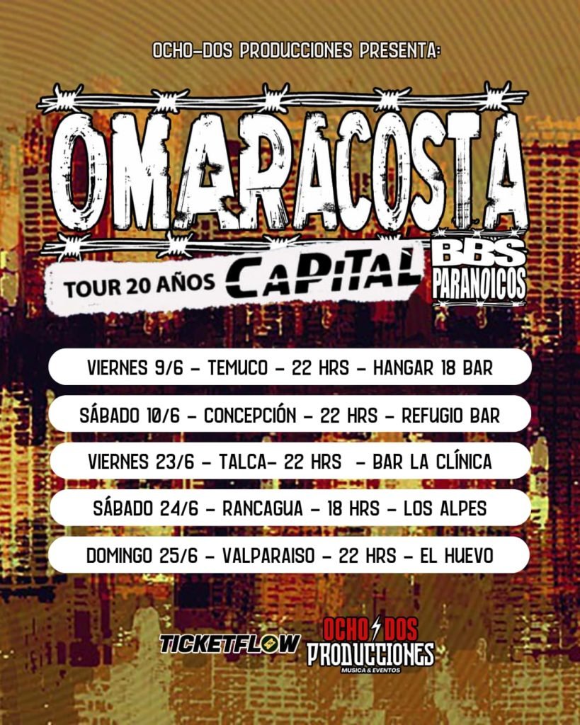 La gira, que llevará a Omar Acosta a través de diversas ciudades del sur de Chile, promete ser un evento inolvidable para los fanáticos del hardcore/punk. Acompañado de una talentosa banda en vivo, el público tendrá la oportunidad de disfrutar de la interpretación enérgica y apasionada de las canciones del disco “Capital”, así como de otros éxitos de BBS Paranoicos.