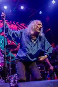 La noche comenzó con IIII, la nacional que, con su sonido denso y envolvente, estableció el tono perfecto para la noche. Su propuesta, con tintes de sludge y post-metal, resonó con fuerza entre los asistentes, generando una expectación palpable para la llegada de los titanes del doom. Cuando Liebling apareció en escena, el público supo que estaba presenciando algo especial. A sus más de 70 años, el vocalista sigue siendo un frontman hipnótico que se adueñó del escenario con su estilo inconfundible, moviéndose de manera casi ritualista, lanzando miradas intensas al público, gesticulando con una expresividad que solo él posee y generando una conexión con la audiencia que pocos pueden igualar. Aunque en redes se ha viralizado por su carisma y excentricidad, en vivo demuestra que su legado va mucho más allá de un video compartido.