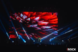 La iluminación generalmente en tonos azules y púrpuras le da una connotación oscura a la puesta en escena, oscuridad que es rota por las imágenes que se van proyectando en la pantalla de fondo. Cortes como “The Sound of Muzak”, “Last Chance to Evacuate Planet Earth Before It Is Recycled” y “Chimera’s Wreck” cimentan el camino hacia el final de la primera parte, dándonos un descanso de veinte minutos, antes de seguir con un espectáculo que a esas alturas ya tenía a las quince mil almas boquiabiertas con lo que se estaba viviendo al interior de recinto.