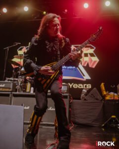 Otro detalle memorable fue la posición de Robert Sweet, el baterista, montado de lado como es habitual en él, permitiendo que el público lo observe sin barreras. Esta disposición única, que utiliza desde fines de los 70, aporta un elemento visual extraordinario, demostrando que el show no es solo música, sino también espectáculo.
