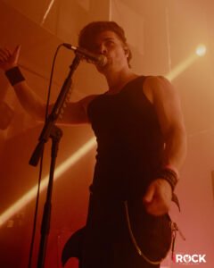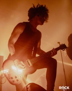 Kai, actualmente guitarrista de la nueva formación, le brindó al ambiente una energía exquisita y muy pura del rock de los ochenta, algo que algunos podrían comparar con una deidad asiática emergiendo desde el lóbrego umbral. Su sola presencia añadió un contrapunto precioso al dominio vocal de Andrew, cuando ella rasgaba las cuerdas, esos instantes parecían anunciar algo mayor, una ruptura luminosa en medio de la noche. Aun con la falta de una batería humana —un detalle no menor para quienes sentimos la pulsación orgánica del ritmo—, la máquina Doktor Avalanche cumplió con un rigor alucinante. Pero uno no puede evitar imaginar qué efervescencia adicional podría haber surgido con una batería real. Aun así, fue un suceso épico, más que un concierto, una ceremonia velada de sombras y latidos mecánicos.
