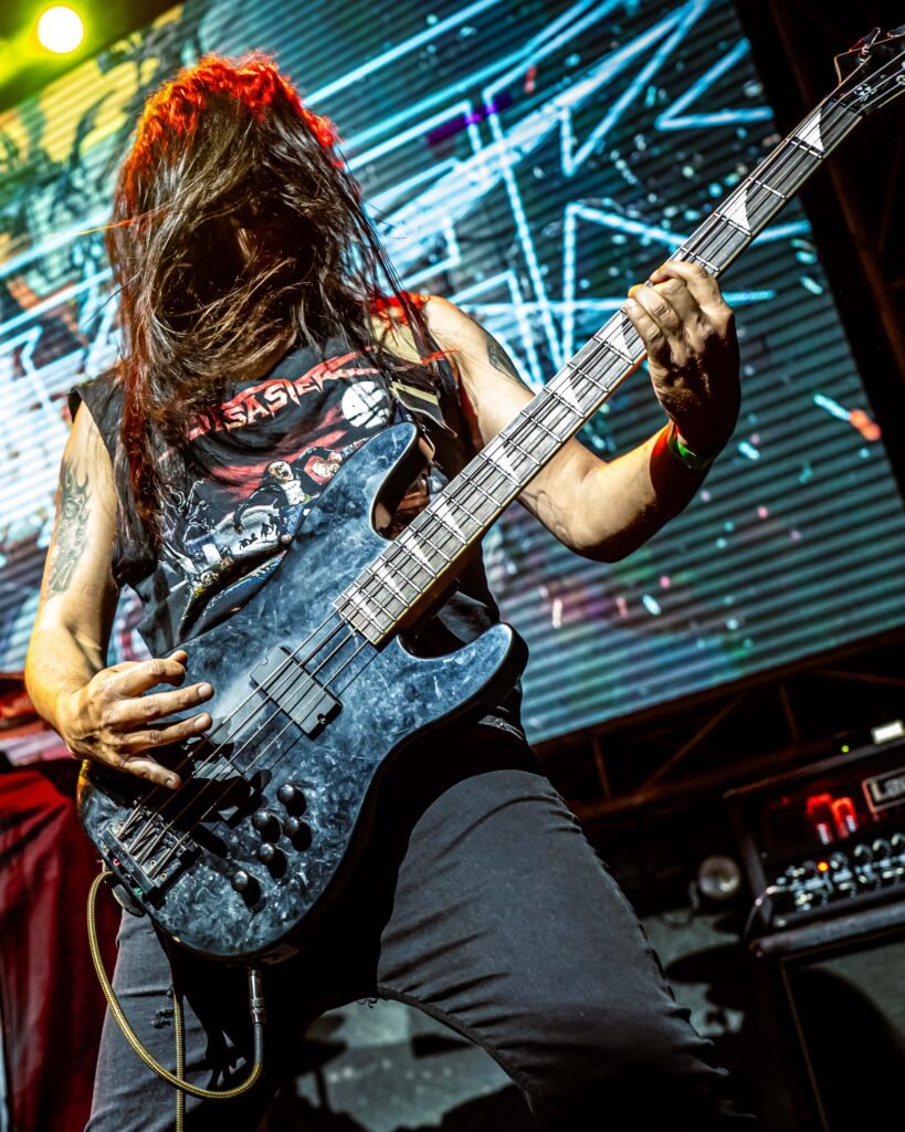 “The Morning After” mantuvo el caos en expansión, y cuando las guitarras se apagaron momentáneamente, lejos de frenar la intensidad, “Guerre” su cantante y la batería sostuvieron el pulso como si nada. El público siguió girando igual, como una masa autónoma. Cuando las guitarras volvieron, la explosión fue aún más violenta. Ese tipo de detalles separan un buen show de una experiencia real de thrash, aquí nadie baja la intensidad.