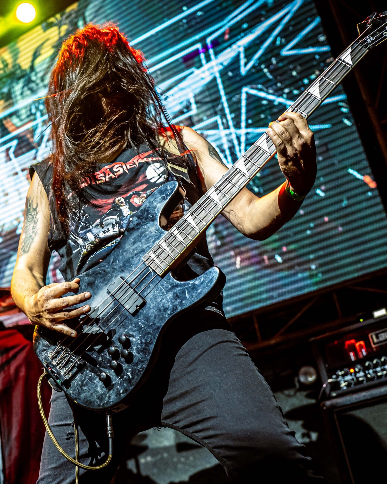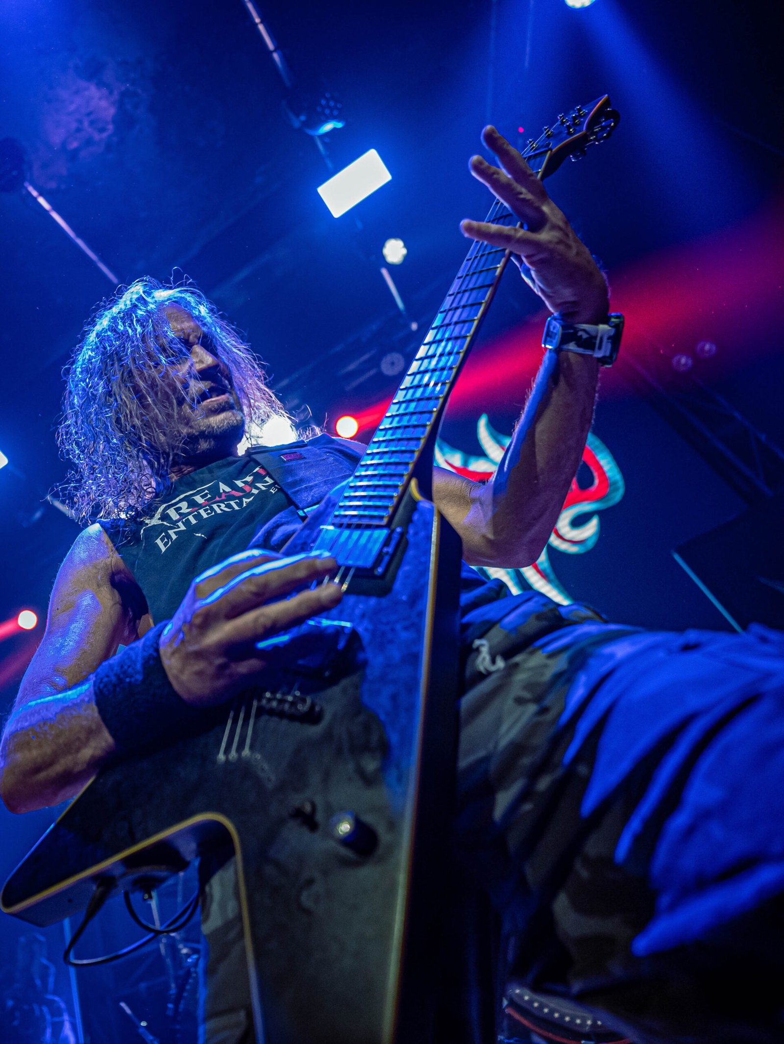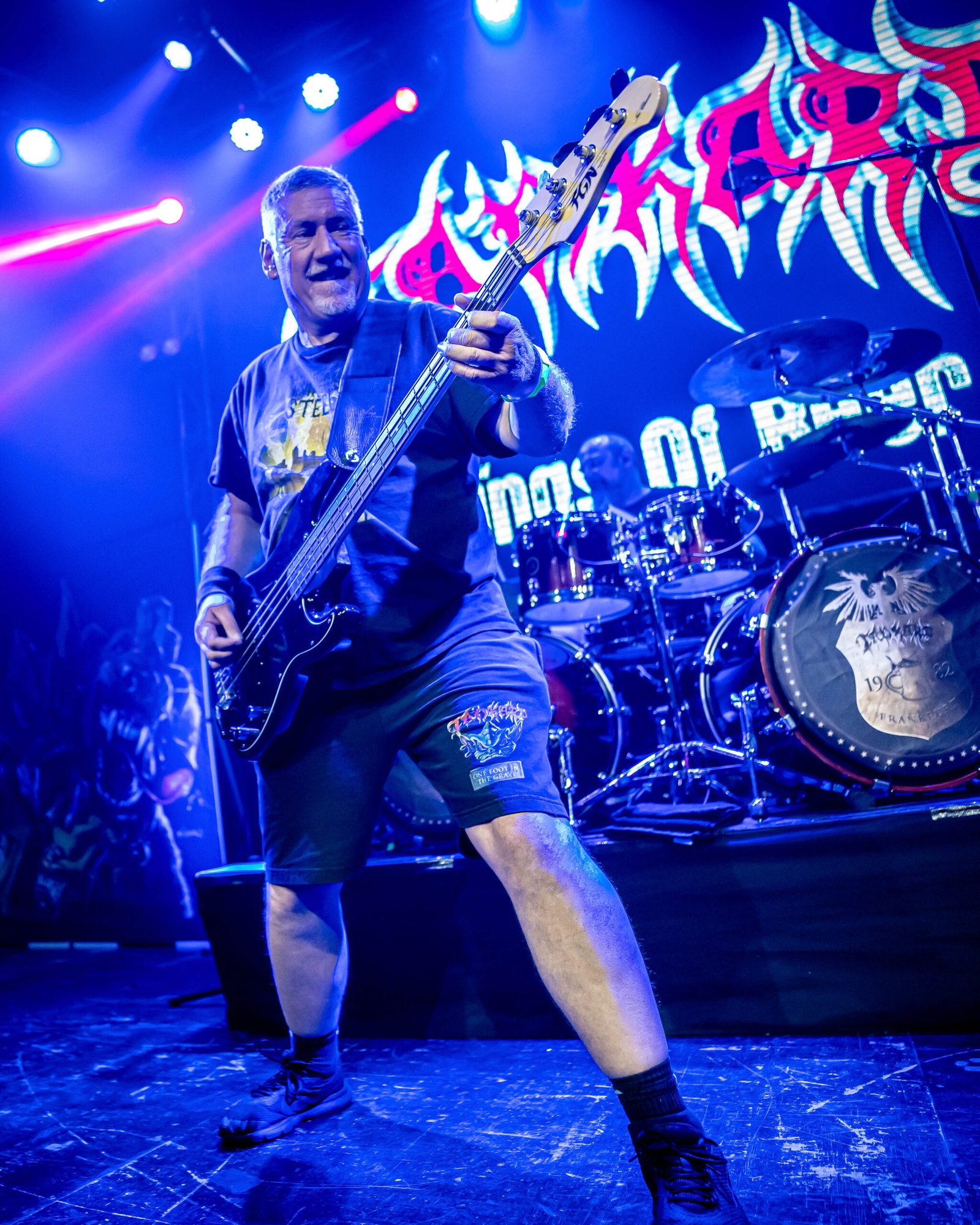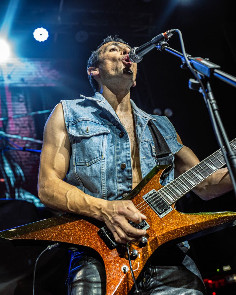 “Octane Warriors” bajó levemente la intensidad, pero solo en apariencia. El fuego seguía ahí, cocinándose lento. El bajista, completamente metido en el show, recorría el escenario con pequeños bailes que marcaban el pulso, manteniendo la energía viva incluso en los pasajes menos explosivos.