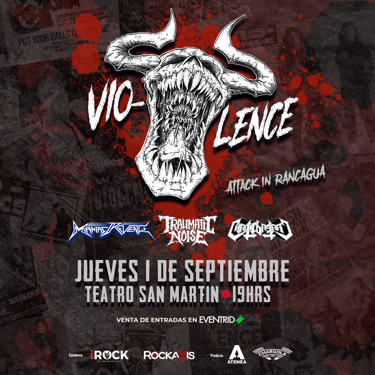Para completar el cartel de este esperado debut y transformarlo en una verdadera fiesta, se presentarán las bandas nacionales: Maniac Revenge, Traumatic Noise y Chaotic Bastard